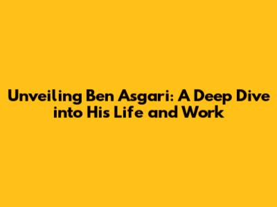 Unveiling Ben Asgari: A Deep Dive Into His Life And Work