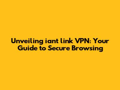 Unveiling Iant Link VPN: Your Guide To Secure Browsing