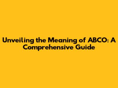 Unveiling The Meaning Of ABCO: A Comprehensive Guide