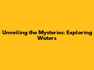 Unveiling The Mysteries: Exploring Waters