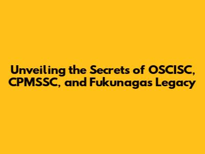 Unveiling The Secrets Of OSCISC, CPMSSC, And Fukunaga's Legacy