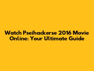 Watch Pseihackerse 2016 Movie Online - Your Ultimate Guide
