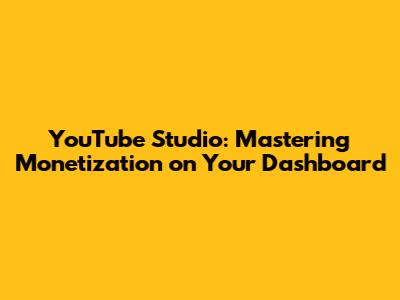 YouTube Studio: Mastering Monetization On Your Dashboard